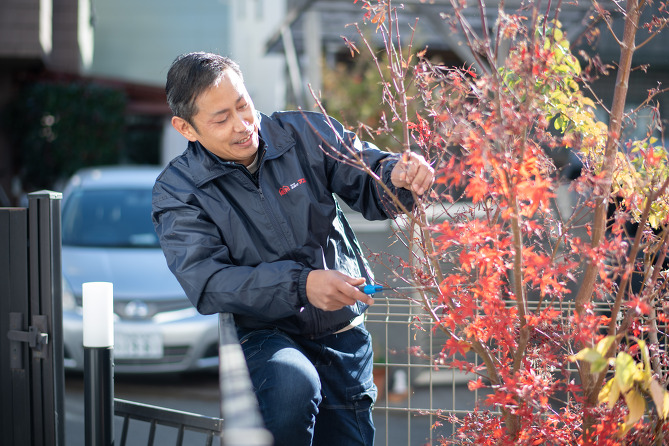 旦那が腰を悪くしたので庭の草むしりができずに困っているところ、ネットで御社を見つけてお見積をお願いしました。電話対応から現地の見積までとてもいい方で、しっかりと説明をしていただいてから作業してもらいました。いままで手を抜いて除草していたのですが、今回は見違えるほどキレイになったので依頼してよかったです。