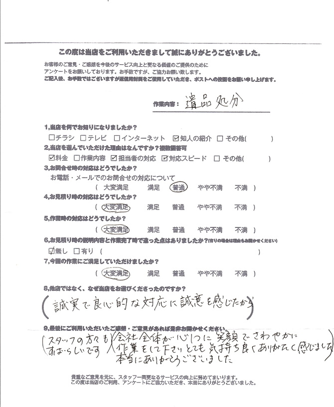 2, 優良事業所に認定当社では全国30社に1社のみ選ばれる〈優良事業所〉に選ばれております。また、遺品整理協会から地区統括会員として選定されている便利屋業者となっております。